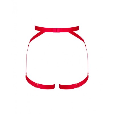 Imbracatura in vita e per le gambe disegnata in rosso passione con un cuore decorativo. Perizoma non compreso.