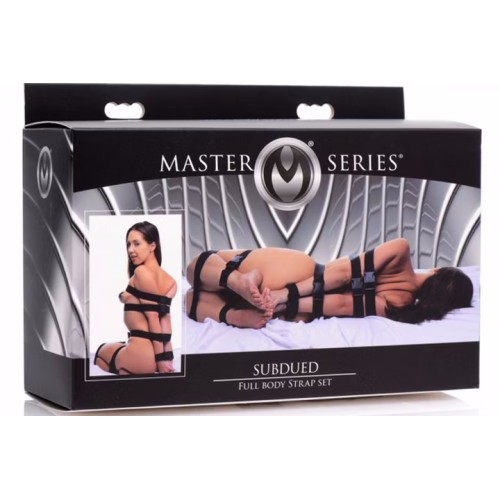 Trattieni il tuo partner con sette cinghie per il corpo in varie lunghezze tramite questo set completo per bondage della collezione Master Series.
